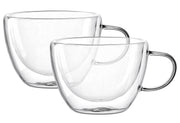 Borosilikat-Glas, doppelwandig, handgefertigtes Unikat, hitzebeständig, maximal 100°C, spülmaschinengeeignet, mikrowellengeeignet Füllvolumen je 360 ml, Nutzvolumen je 200 ml, Ø 11 cm, H 9,5 cm·Fachhandel exklusiv