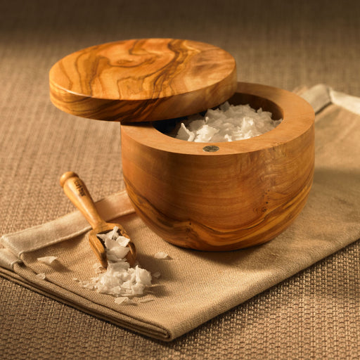 Vollständige Details anzeigenDer wunderschöne, runde Salzbehälter aus em Olivenholz glänzt durch die schöne Form, sowie die e Maserung des hochwertigen Olivenholzes. Der Deckel...