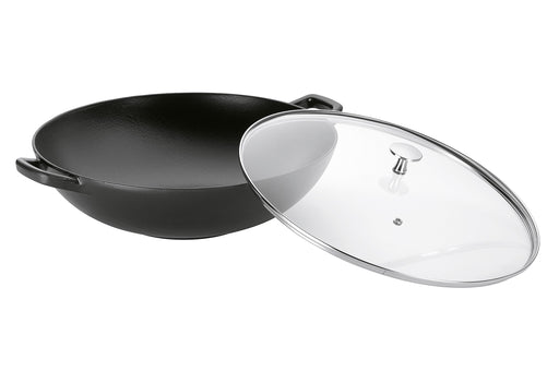 Vollständige Details anzeigenInhalt: 1 x Wok aus Gusseisen, für alle Herdarten geeignet inkl. Induktion, Deckel aus Metall, Dünstrost aus Edelstahl, 1 x Paar Stäbchen, Holzzang...