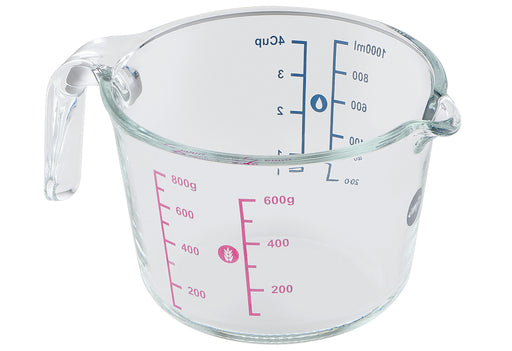 Glas, robust, doppelte Skala, Griff, Ausgießrand·transparent 1 l, 18,5x16,5x13 cm