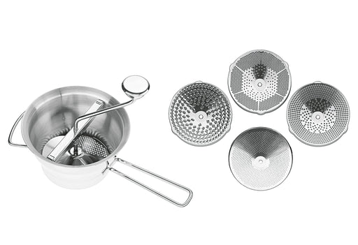 Edelstahl, mit vier Scheiben (grob 5 mm, mittel 3 mm, fein 2,5 mm und extra-fein 1,3 mm), spülmaschinenfest, in Geschenkverpackung· Ø 21,1 cm, H 2...