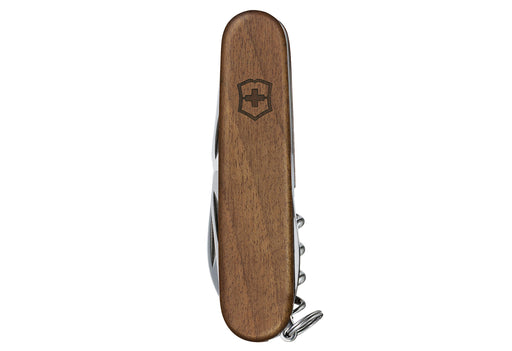 Holz / Nussbaum, Feststellklinge, Dosenöffner mit kleinem Schraubendreher 3 mm, Kapselheber mit feststellbarem Schraubendreher, Drahtabisolierer, H...