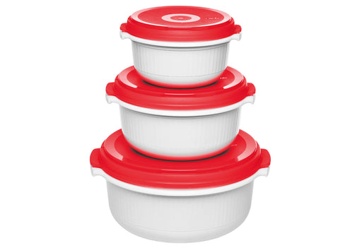 Vollständige Details anzeigenKunststoff, Inhalt: je 1 x Topf 0,5 l, 1 l, 1,5 l, Deckel mit 2-fach Nutzen: zum Frischhalten, und als Spritzschutz in der Mikrowelle (Dose darf in...
