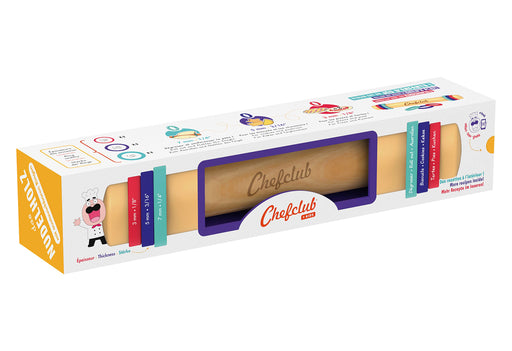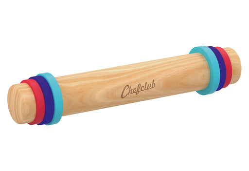 mit Silikonringe für gleichmäßige Dicke: 7 mm (blau), 5 mm (lila) und 3 mm (rot), inkl. Ebook mit Rezepte für das Nudelholz L 30 cm