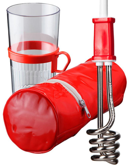 Tauchsieder mit Abschaltautomatik, 230 Volt~, 2.000 Watt, Messingrohr vernickelt, Wasserstandsmarkierung am Rohr eingeprägt, rotes Griffstück mit A...