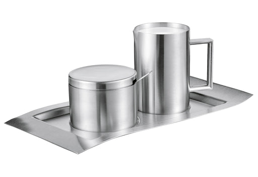 Vollständige Details anzeigenEdelstahl 18/10 gebürstet, Inhalt: je 1 x Tablett, Gießer, Zuckerdose, Zuckerlöffel, spülmaschinengeeignet