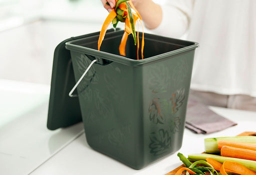 Besteht aus robustem rezykliertem Kunststoff, durchdachter Biomüll-Eimer mit Deckel, mit Griff für einfaches Tragen, einfach zu reinigen, erhältli...