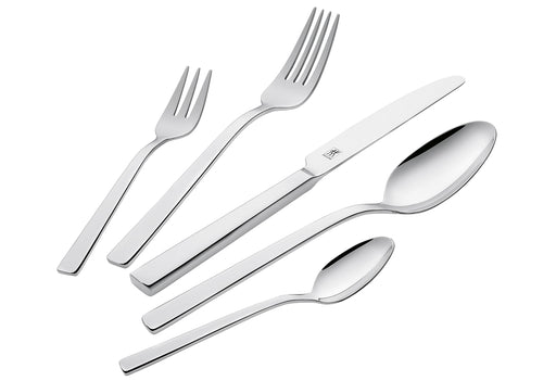 Edelstahl 18/10, mattiert, für 6 Personen, enthält 6 Menümesser, 6 Menügabeln, 6 Menülöffel, 6 Kaffeelöffel, 6 Kuchengabeln, spülmaschinengeeignet