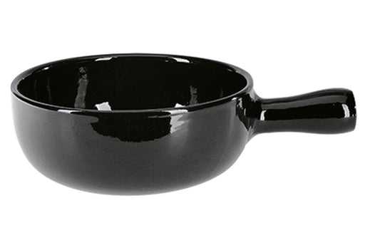 Terracotta, Glasur schwarz glänzend, Füllmenge 1,7 Liter, runder, halbhoher und dickwandiger Topf mit Stiel, für die Zubereitung von Käsefondue, Ma...
