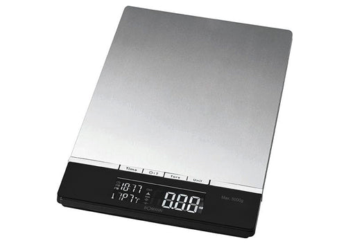 Wiegefläche aus Edelstahl, Messbereich bis 5 kg, extra flache digitale Küchenwaage mit permanenter Uhr und Temperaturanzeige, gut ablesbares, hochw...