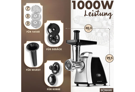 View full detailsVor- und Rücklauffunktion, Schnelles Verarbeiten von großen Mengen, Zubereitung von Hack (Tatar) aus Fleisch und Fisch, sowie Kebbe und Wurst mögli...