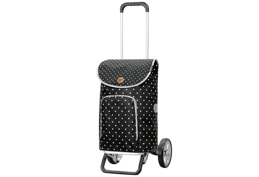 View full detailshöhenverstellbares, flach zusammenfaltbares Gestell (Aluminium) und große schwarze Räder, moderne Tasche mit charmanten großen und kleinen Punkten....
