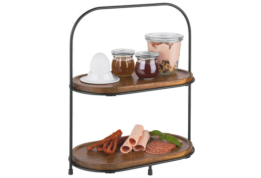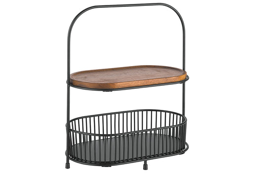 Metall / Akazienholz, Inhalt: 1 Gestell, 2 Metallkörbe, 2 Holzbretter·schwarz (LxBxH): 31x17x37,5 cm