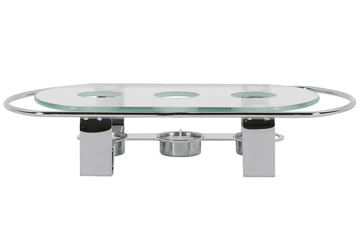 3-flammig, Metall verchromt, mit hitzebeständiger Glasplatte, inkl. Teelicht·silber (LxBxH): 34x18x6 cm·