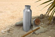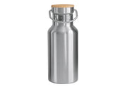 Edelstahl rostfrei / Bambus (Deckel) / Silikon (Dichtungsring am Deckel), isoliert, hält Getränke bis zu zwölf Stunden warm oder 24 Stunden kalt, auslaufsicher 350 ml