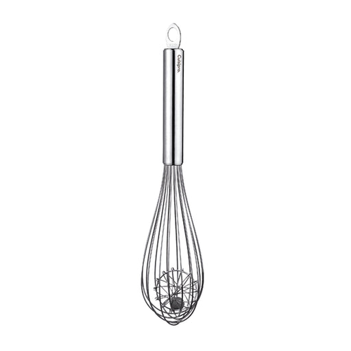 Duo-Schneebesen mit integriertem Drahtball. Draht aus rostfreiem Edelstahl, der einen Ball mit einer Keramikmurmel umschließt. Acht Drähte. Der Bal...