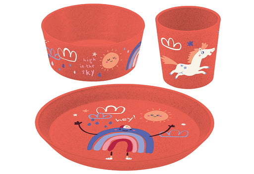 View full detailsbiozirkulärer Kunststoff, Inhalt: 1 kleiner Teller, 1 Schale, 1 Becher, robust, leicht, stapelbar, verzeiht auch mehrfache Saltos vom Esstisch, mel...