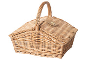 gesottene Vollweide, rechteckig, zwei Klappdeckel (seitlich abfallend) mit Kunstleder befestigt, oben Kunstlederlasche mit Verschluss, stabiler Henkel, mit Stoffausschlag hellgrau (LxBxH): 33x22x16 cm