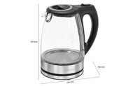 Füllmenge bis zu 1,7 Liter, Glas-/Edelstahlgehäuse, Verriegelter Sicherheitsklappdeckel, Wasserbehälter aus hitzebeständigem Sicherheitsglas, Einfache Handhabung durch kabellose Technik – leichtes Ein- und Ausgießen, 360° drehbare Steckverbindung, Ein-/Ausschalter, Verdecktes Edelstahlheizelement, Automatische und manuelle Abschaltung, Wasserstandsanzeige, Basisstation mit Kabelaufwicklung (edelstahlummantelt), Trockengeh-/Überhitzungsschutz, 220–240 V, 50/60 Hz, 1850-2200 W, Schukostecker CEE 7/7