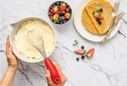 Stainless Steel / Polypropylene, spülmaschinenfest, aus einem Schneebesen werden drei – ein großer Ballonschneebesen zum Aufschlagen, ein Saucenschneebesen für flache Flüssigkeiten und ein flacher Schneebesen zum Ablöschen, lässt sich komplett flach zusammenfalten und platzsparend aufbewahren·rot (LxBxH): 295x76x76 mm·Fachhandel exklusiv·