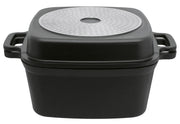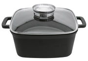 Aluminiumguss, Inhalt Set: Topf, Aluguss-Deckel mit eingearbeiteten Griffen und Grillrippen, Edelstahl-Dünsteinsatz, Glasdeckel mit stoßfestem Edelstahlrand und Aromaknopf, Wandstärken ca. 1,8 mm, Bodenstärken ca. 3,7 mm, gelochter Induktionsboden, innen schwarze, kratzfeste ELODUR® Edition Antihaftversiegelung, außen matt schwarz Silikon Polyester beschichtet, für alle Herdarten geeignet, backofenfest bis 240°C (mit Glasdeckel bis 180°C), spülmaschinengeeignet·schwarz 6 l, Ø 24 cm, H 10,5 cm