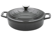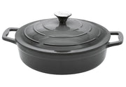 Gusseisen / Deckel mit Edelstahlknauf, innen cremefarben emailliert, außen grau emailliert, Wandstärke ca. 5 mm, Bodenstärke ca. 6 mm, für alle Herdarten geeignet, scharfe und krosse Zubereitung, optimale Wärmeleitung, backofenfest bis 240°C, säurebeständig, leicht zu reinigen, spülmaschinengeeignet·grau 3 l, Ø 28 cm, 9,5 cm