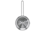Edelstahl 18/10, Inhalt: 1 x Fleischtopf mit Glasdeckel Ø 16 cm, 1,7 l, 1 x Fleischtopf mit Glasdeckel Ø 20 cm, 3,3 l, 1 x Fleischtopf mit Glasdeckel Ø 24 cm, 5,7 l, Stielkasserolle mit Ausguss Ø 16 cm, 1,3 l, mit energiesparendem Kapselboden, innen satiniert mit Literskala und Öl-Dosiersystem, Topfkörper außen mit schwarzer, transparenter PVD Oberflächenveredelung, Topfboden satiniert, kratz- und verschleißfest, hitzebeständig, Edelstahl Drahtgriffe, geschweißt, Glasdeckel mit stoßfestem EDS-Ring, EDS-Bügelgriff mit Fingerschutzplatte, spülmaschinengeeignet, backofenfest bis 240 °C ohne Deckel (mit Glasdeckel 180 °C), für alle Herdarten geeignet inkl. Induktion·grau