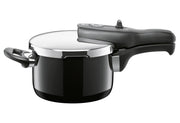Silargan, Boden mit durchgezogenem Stahlkern, schnelle Wärmeleitung, optimale Hitzespeicherung, Abdampfautomatik, Restdrucksicherung, Sicherheitsschlitz, Überdrucksicherung, Verriegelungssperre, 3 fest einstellbare Kochstufen (Schon-, Schnell-, Dampfkochstufe), Einhand-Kochstufenregler, für alle Herdarten geeignet·schwarz 2,5 l, Ø 18 cm