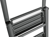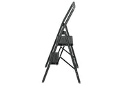 Aluminium, hohe Stabilität durch Anti-Rutsch Füße, klappbar, gummierte Stufen, Haltegriff und Sicherheitsbügel an der obersten Stufe, der ungewolltes Einklappen durch Einklinken verhindert, Belastbarkeit bis 150 kg, Maße zusammengeklappt (BxHxT): 45,5x91,5x6 cm·schwarz (BxHxT): 45,5x84,5x43,5 cm