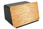 Kunststoff (PVC/PU), mit Bambusbrett als Deckel, gewährleistet eine dunkle Lagerung ist auch als Schneidebrett zu nutzen, vor dem Schneidebrett lässt sich optimal ein Tablet oder ein Smartphone anlehnen um z.B. Kochrezepte im Blick zu haben, der Kasten hat zwei Ebenen im Inneren, Belüftungslöcher auf der Rückseite sorgen für eine optimale Luftzirkulation·schwarz (LxBxH): 37x27x23 cm