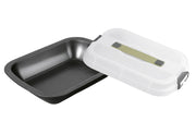 Stahlblech, extra hoher Rand (6 cm), hitzebeständig bis +230°C, nur Handreinigung, ILAG Ultimate Antihaft-Beschichtung für einfaches Herauslösen des Kuchens, transparente Haube zum Transportieren, zwei beschriftbare Magnetschilder·schwarz / transparent (LxBxH): 36,5x25,5x9,5 cm