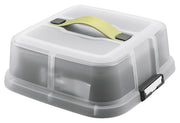 Stahlblech / PP, extra hoher Rand (8 cm), hitzebeständig bis +230°C, nur Handreinigung, Teflon Classic Antihaft-Beschichtung für einfaches herauslösen des Kuchens, transparente Haube zum Transportieren, zwei beschriftbare Magnetschilder·schwarz / transparent Springform (LxBxH): 24x24x8 cm, Boden (LxB): 30x30 cm