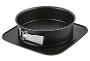 Stahlblech / PP, extra hoher Rand (8 cm), hitzebeständig bis +230°C, nur Handreinigung, Teflon Classic Antihaft-Beschichtung für einfaches herauslösen des Kuchens, transparente Haube zum Transportieren, zwei beschriftbare Magnetschilder·schwarz / transparent Springform Ø 24 cm, Boden (LxB): 30x30 cm