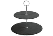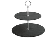 2-stufig, Naturschiefer, Materialstärke: 4 - 7 mm·schwarz / silber Ø 20 cm / 25 cm, H 24 cm·