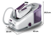 PowerSteam Technologie, FreeGlide 3D Bügelsohle mit einzigartiger EloxalPlus-Beschichtung, Dampfdruck 7,5 bar, Dampfstoß 550 g/min, Konstanter Dampf 160 g/min, Wassertank 2,0 l (abnehmbar), Entkalkungssystem, One-Touch-Bedienung für einfaches und intuitives Wählen des richtigen Moduses: es kann zwischen "iCare", "Turbo" und "Eco" gewählt werden, Sicherheitsabschaltung, Transportverriegelung, Kabelaufbewahrung, Stromkabellänge 1,7 m, Schlauchlänge 1,8 m, Leistung 2.700 W, Schukostecker CEE 7/7