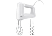 SmartMix - optimale Gewichtsverteilung durch vertikale Ausrichtung des Motors, EasyClick - einfach austauschbares Zubehör mit nur einem Klick, 5 Geschwindigkeitsstufen und Turbo-Funktion, Einhandbedienung, flexibler Kabelauslass, 2 Edelstahl-Rührbesen, 2 Edelstahl-Knethaken, max. Drehzahl: 900 (Knethaken / Schneebesen), Gerätemaße L x B x H: 21 x 7,5 x 16 cm, Gewicht: 820 g, 450 Watt, Eurostecker CEE 7/16
