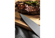 Der beeindruckende 20 cm lange Klingenstahl besteht aus rostfreiem, hochlegiertem Edelstahl, der nicht nur für seine Langlebigkeit bekannt ist, sondern auch für seine Fähigkeit, eine extrem scharfe Kante zu halten. Die Klinge wurde sorgfältig geschliffen, um eine glatte und präzise Schneidfläche zu gewährleisten. Egal, ob Sie feine Scheiben von Schinken, Wurst oder anderen delikaten Fleischsorten schneiden möchten, dieses Messer verwandelt jede Zubereitung in ein wahres Kunstwerk.