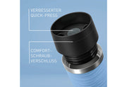 Edelstahl mit Soft-Touch-Sleeve im Wellendekor, hält Getränke bis zu 4 Stunden heiß oder 8 Stunden kalt, 100% dicht, auslaufsicher, rutschfester Boden, verbesserter Quick-Press-Verschluss, Comfort-Schraubverschluss, 360°-Trinköffnung, spülmaschinenfest·pastellblau 350 ml
