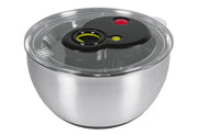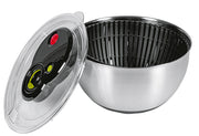 Edelstahl 18/10, mit Turbo-Antrieb, komfortabler Soft-Touch Griff, integrierter Ausguss im Deckel, effizienter Bandmechanismus mit Stopp-Knopf, tischfeine Salatschale aus Edelstahl 18/10, spülmaschinenfest, 2 Jahre Garantie· 4,5 l, Ø 26 cm