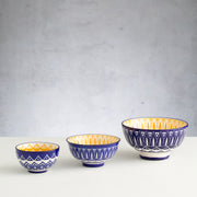 Bringen Sie Farbe und Gefühle aus dem Mittelmeerraum in Ihr Zuhause mit den World Foods Tunis Schalen. Wunderschön detailliert mit einem europäisch inspirierten Muster in einer Kombination aus Blau und Gelb, ist jede Schale auffällig und lebendig.
