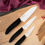 Nachhaltig scharf: Die neue Bio Serie von Kyocera. Jetzt wird‘s auch in der Küche ökologisch: Die neue Bio Serie von Kyocera präsentiert ergonomisch geformte Griffe, die aus Bio-Plastik, zum Großteil bestehend aus dem nachwachsenden Rohstoff Zuckerrohr, gefertigt werden. Zudem kommt die Verpackung der Schneidwerkzeuge ganz ohne Kunststoff aus. Wie bei allen Küchenutensilien von Kyocera bestehen die handgeschliffenen Keramikklingen aus besonders hochwertiger Zirkoniakeramik, einem sehr leichten und extrem harten Hightech-Material. Die dichte und glatte Klingenoberfläche ermöglicht einen präzisen und extrem scharfen Schnitt und transportiert keine Metallionen. Auch die neuen Bio Messer behalten ihre Schärfe für einen bewundernswert langen Zeitraum. Dank des ergonomischen Griffes aus Bio-Plastik, liegt es angenehm in der Hand. Somit sind die sehr scharfen Messer ideal für Gemüse, Fisch und Fleisch – passend für jede Profi- oder Hobbyküche.