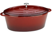 Gusseisen, innen emailliert, oval, spülmaschinengeeignet, für alle Herdarten inkl. Induktion geeignet, auch für den Backofen mit Deckel bis 300° C verwendbar·rot 6 l, (LxBxH): 32x25x12 cm