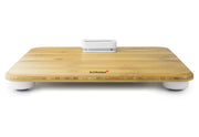 Bambus, batterielos, Display-Button erzeugt Energie für ca. 1 Minute, mit Energie-Kontrollanzeige und Abschaltautomatik, LCD-Display, Ziffernhöhe ca. 22 cm, umschaltbar in kg, lb, nachhaltige Verpackung, plastikfrei, Tragkraft 150 kg, Einteilung 100 g·bambus (LxBxH): 30x30x3 cm