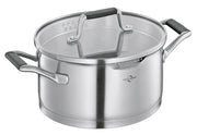 Edelstahl rostfrei / Glas, Topf mit praktischem Ausgießer, extra starker Mehrschichtboden, Deckel aus Sicherheitsglas, inkl. feinem und, grobem Sieb, wärmeisolierende, silikonummantelte Griffe, mit praktischer Innenskala, für alle Herdarten inkl. Induktion geeignet 3 l, H 10 cm, Ø 20 cm·Fachhandel exklusiv