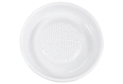 Keramik, mit scharfen Zähnen, Wurzeln wie Ingwer lassen sich dadurch schnell zerkleinern, die unerwünschten Fasern bleiben zurück, die nicht korrosive Schale sammelt das Reibgut, und die würzigen Säfte, ohne den Geschmack zu verändern, auch ideal für "Elefantenknoblauch", zur einfachen Bedienung ist ein Silikonring darunter angebracht, der hält die Reibe bei der Nutzung fest·weiß Ø 9,3 cm·Fachhandel exklusiv·