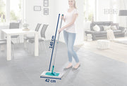 Bezug 100% Mikrofaser (waschbar bis 60 °C), besonders saugfähig, hohe Wasser- und Schmutzaufnahme, ideal für die Reinigung von großen Flächen, das rundum bewegliche Drehgelenk ermöglicht effektives Reinigen in Schlangenlinien und umkreist mühelos Tisch- und Schrankbeine, der Wischer lässt sich komplett abwinkeln, so dass auch schwer zugängliche Stellen unter Schränken und Betten leicht zu erreichen sind, mit der großen und stabilen Fußtaste lässt sich die Bodenplatte mühelos und ohne Bücken entriegeln, um den Wischbezug zu entfernen, ausgestattet mit dem patentierten Leifheit Click System, lässt sich der Stiel mit vielen weiteren Artikeln für die Boden- und Oberflächenreinigung kombinieren, Teleskopstiel: 86 - 140 cm Wischbreite 42 cm