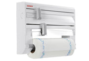 Kunststoff, bewährter Rollenhalter für 3 Rollen, saubere Schnittkanten dank messerscharfer Klingen, jederzeit griffbereite Folien-Enden, Gratis: Qualitäts-Küchentuchrolle von Zewa·weiß (LxBxH): 41,5x26,5x9,5 cm