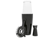 Edelstahl, Inhalt: Shaker, Fassungsvermögen 450 ml, Sieb und Barmaß·schwarz (LxBxH): 9,5x9,5x25 cm·Fachhandel exklusiv
