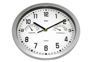 MEBUS Quarz-Wanduhr analog mit Thermometer / Hygrometer ohne 1x AA Batterie Ø22,5cm silber