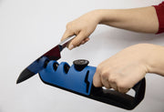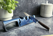 Kunststoff (ABS) / Wolframstahl, 3 in 1: schärft, schleift, poliert Messer in 3 Sek., mit drei innovativen Schleifschlitzen, perfekt für viele unterschiedliche Messertypen und dank eingebauten Scherenschleifers auch ideal zum Schärfen von stumpfen Scheren, über die praktische Stellschraube kann die Neigung der Schleifbakken ganz einfach auf jedes Messer eingestellt werden, kinderleichte Bedienung: einfach durchziehen ohne Kraftaufwand·blau